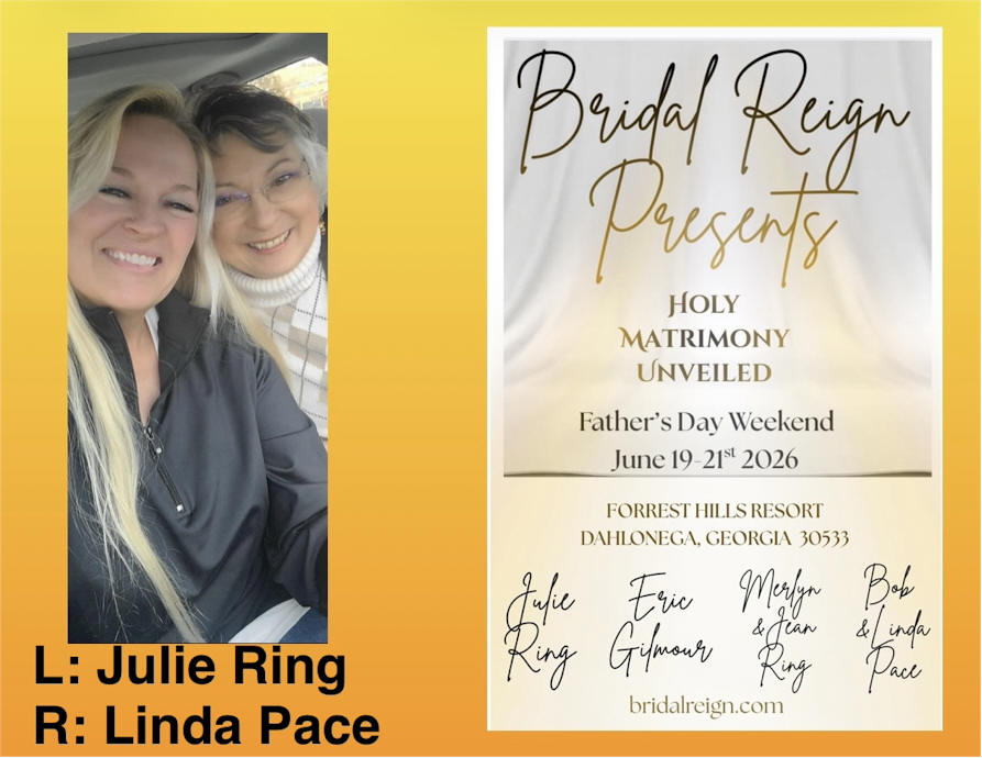 Join Abba Father, Lord Jesus, Holy Spirit, Dr. Sonia and special guests, Julie Ring and Linda Pace of Lilies of the Valley-Bridal Reign Ministries, as they discuss what Jesus is telling us about preparing His Bride for Holy Matrimony to Him and the upcoming gathering for married couples in Dahlonega, Georgia on Father's Day Weekend Friday, June 19, 2026 through Sunday, June 21, 2026.
